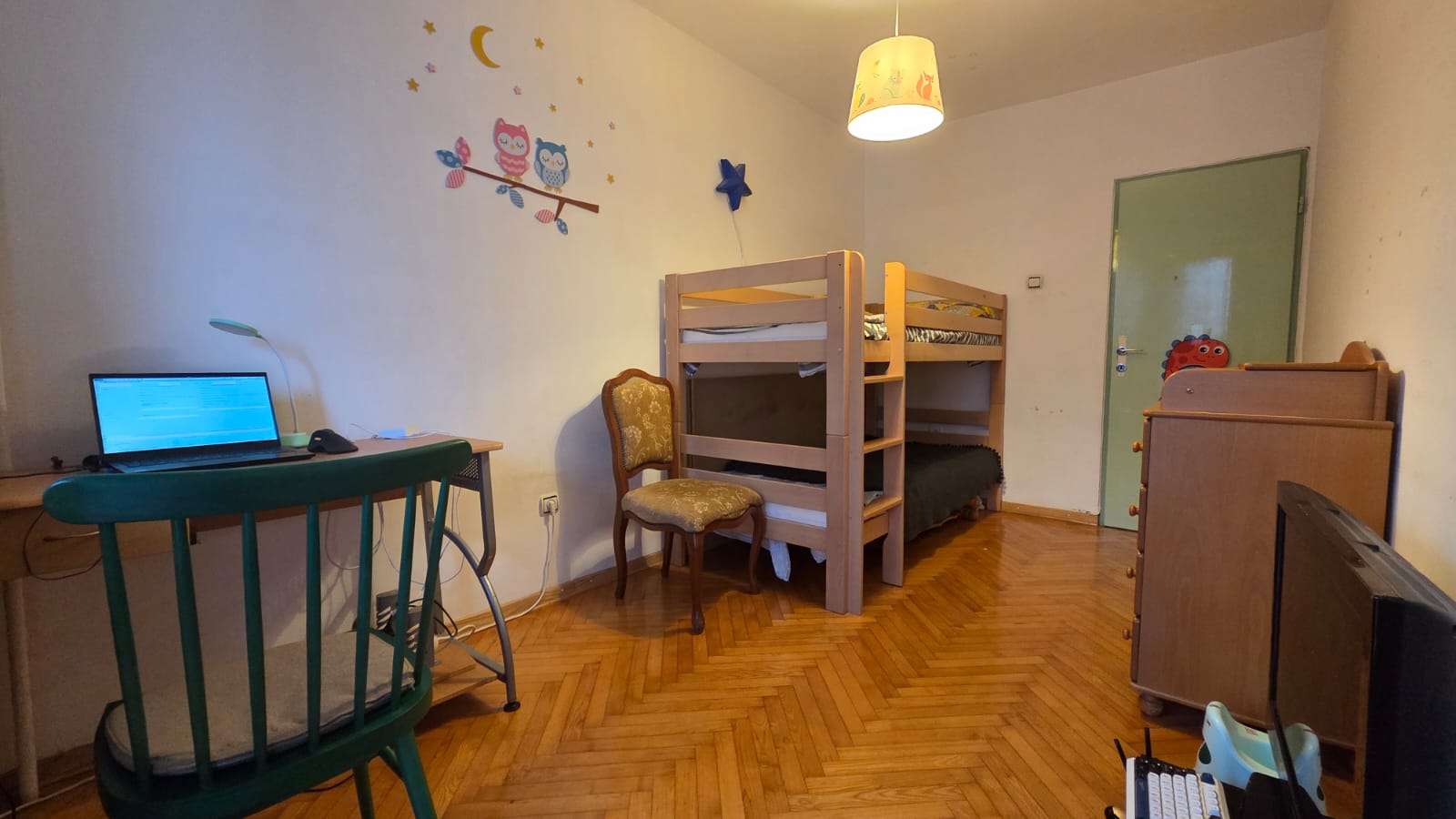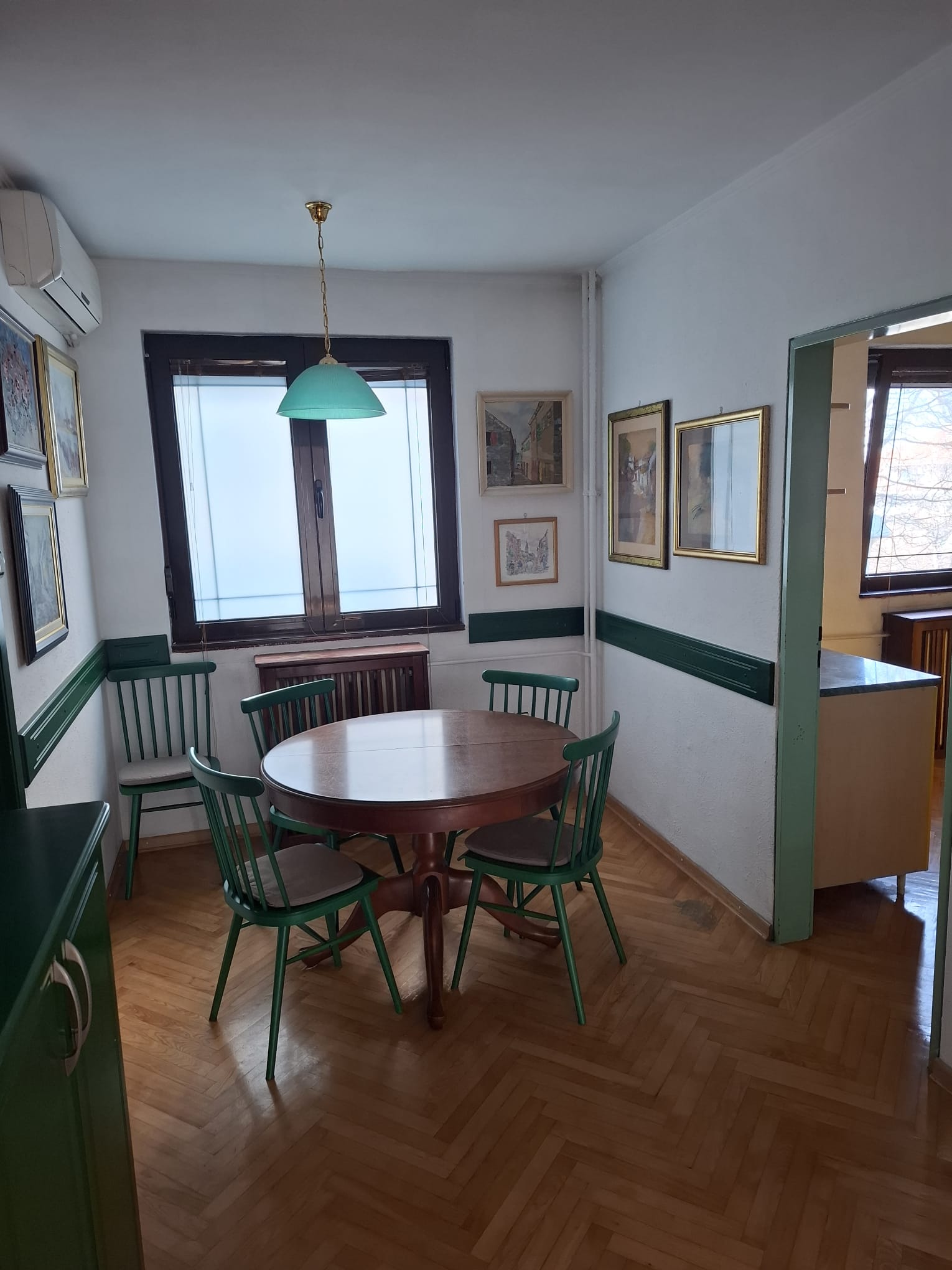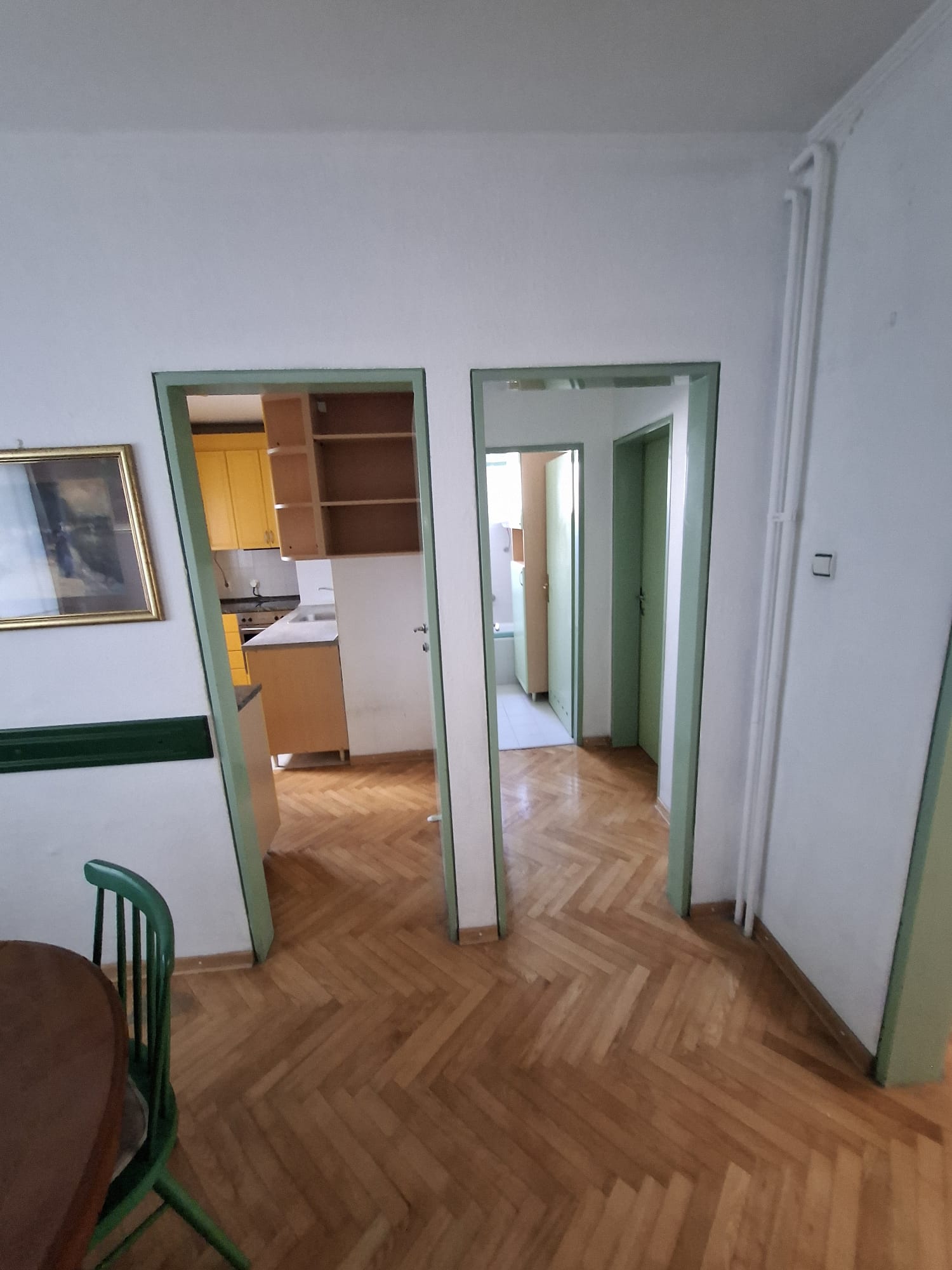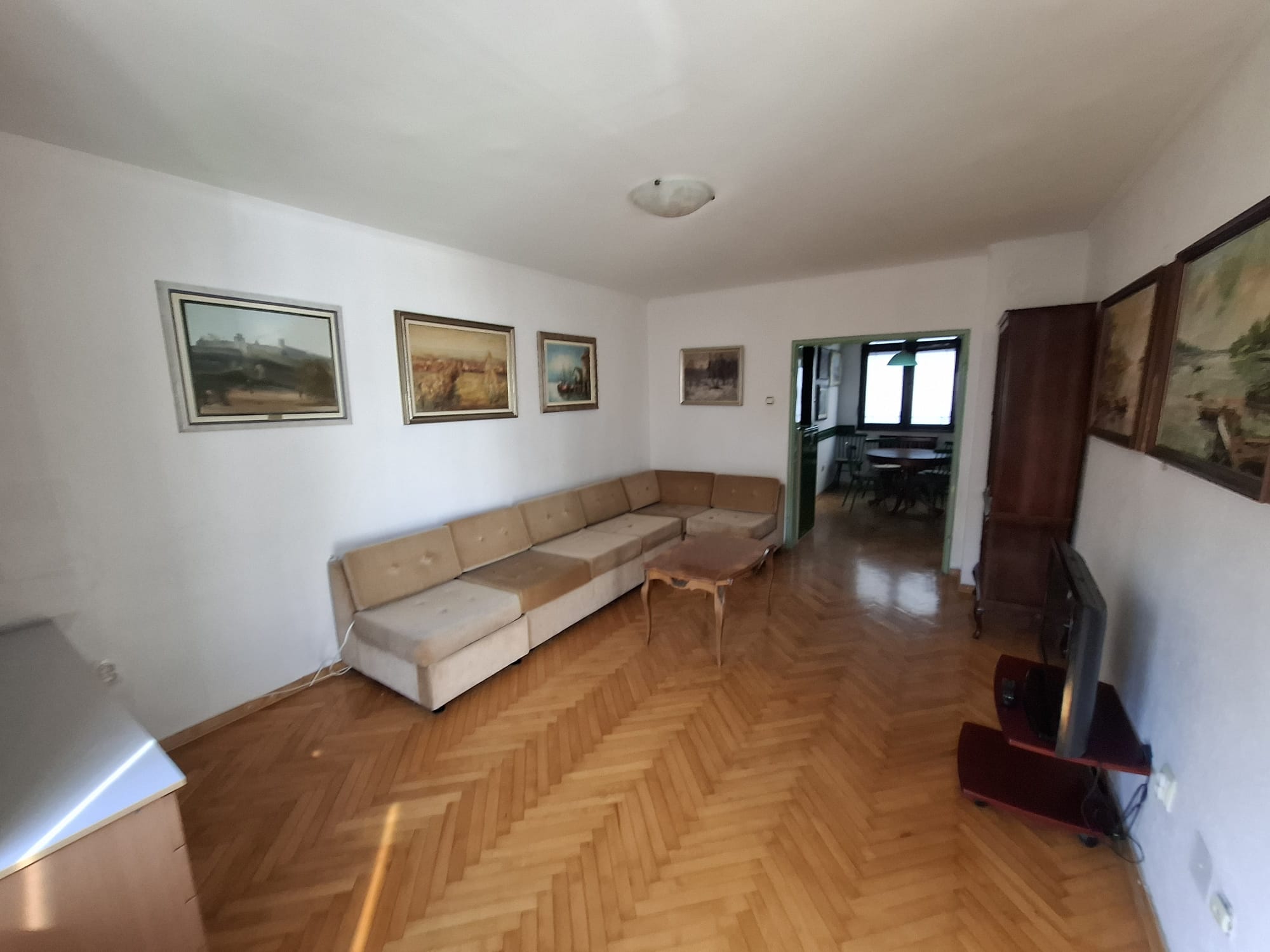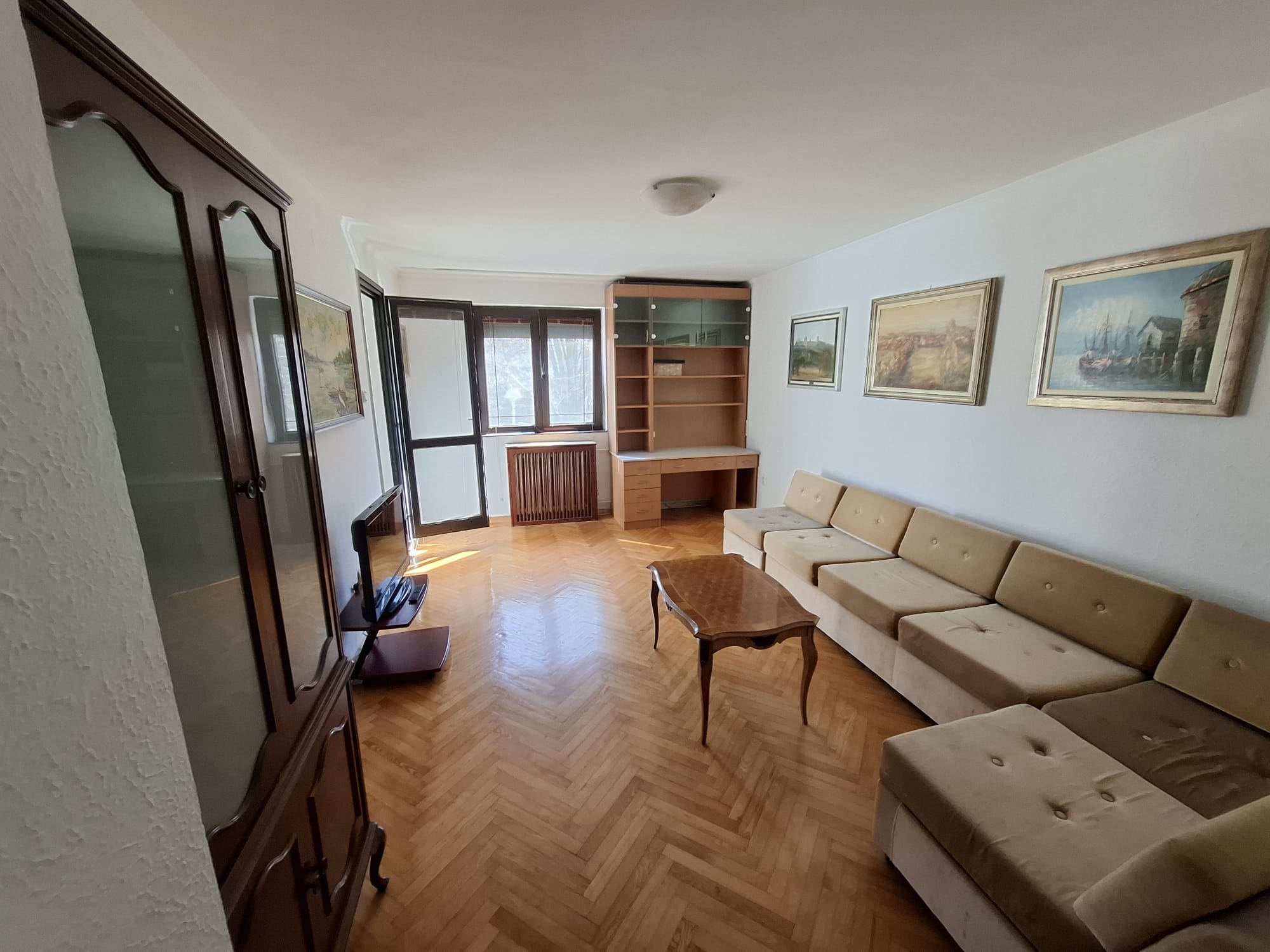 Na odličnoj lokaciji, u srcu prve mesne zajednice, pravi trosban stan na 1. spratu trospratne zgrade dvorišno pozicionirane, trostrano orijentisan sa dve lođe. Odličan raspored, veliki dnevni boravak sa izlazom na lođu, u produžetku trpezarija iz koje se ulazi u kuhinju. Dve velike spavaće sobe, obe sa izlazom na lođe. Kupatilo + toalet. Aluminijumska spoljna stolarija, klasičan jasenov parket, kuhinja i plakari od medijapana. Prodaje se namešten, ali nije uslov. Uknjižen na 78 m2, mereno sa lođama 82 m2. Uknjižen, bez tereta. Odmah useljiv.