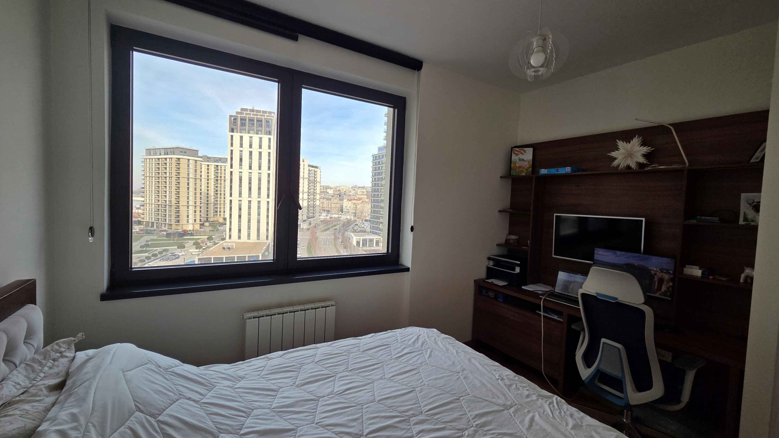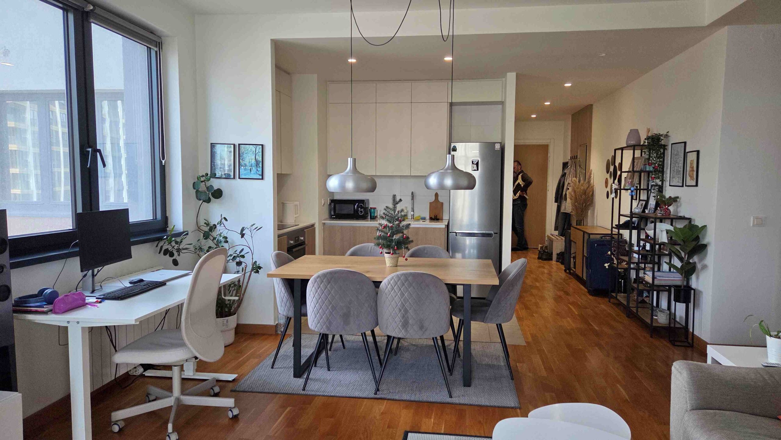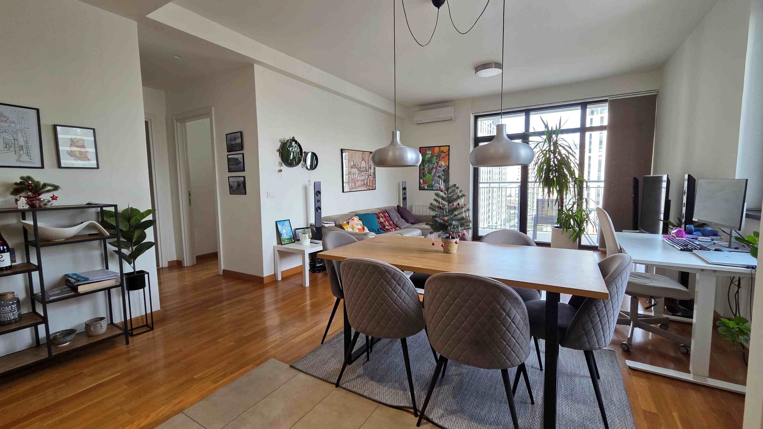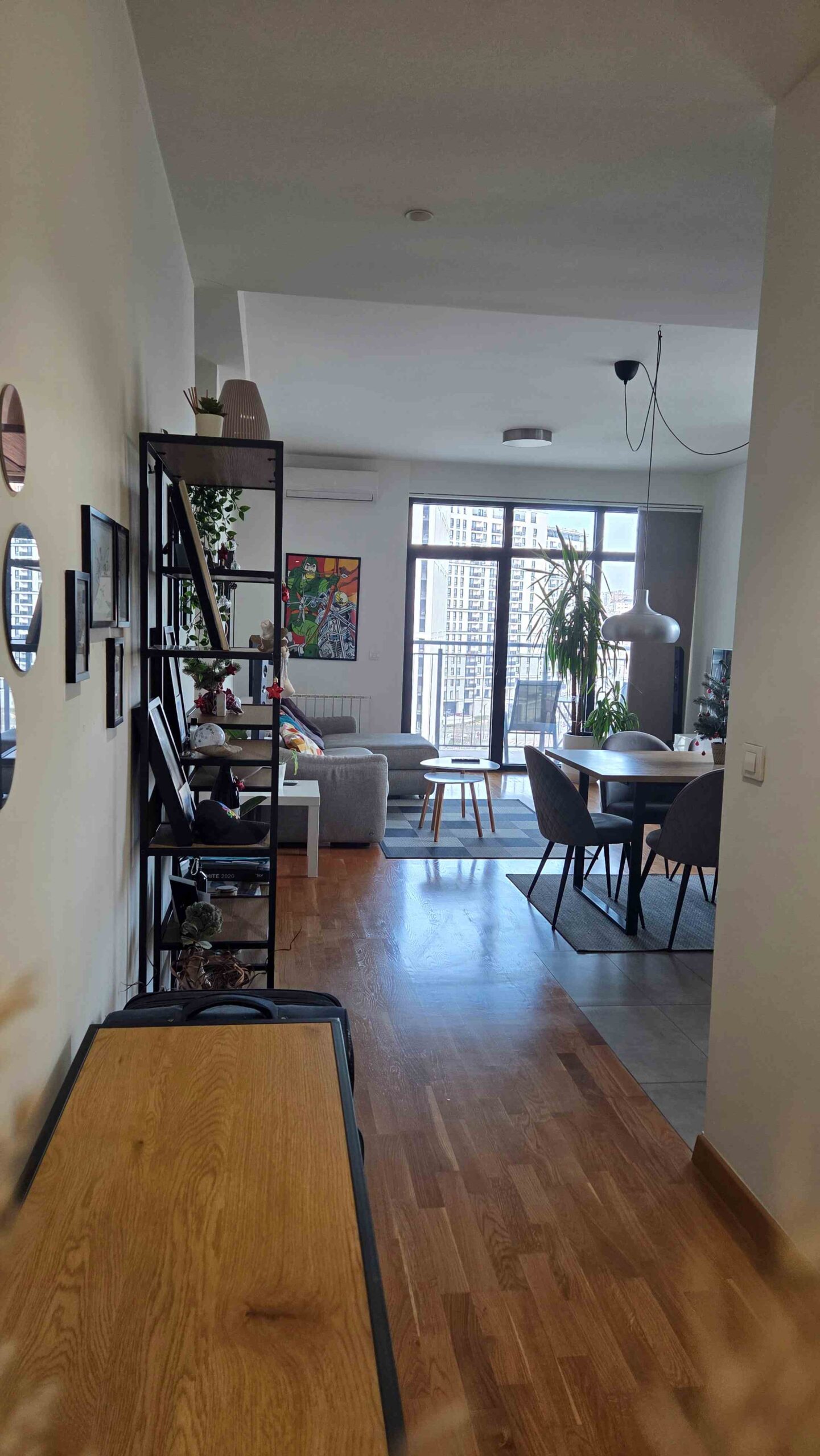 Komforan, moderan i svetao dvosoban stan, dvostrano orijentisan, otvorenog pogleda. Veliki dnevni boravak sa kuhinjom, trepzarijom i izlazom na terasu. Veliko kupatilo i spavaća soba. Zasebno vešernica u ulaznom hodniku. Prodaje se namešten (nije uslov). Visina plafona 2.80m. Pripadajuća podrumska ostava. Garažno mesto 12m2 po ceni od 25.000 eur. Idealan za život i kao investicija. Trenutno pod zakupom. Vredi pogledati.